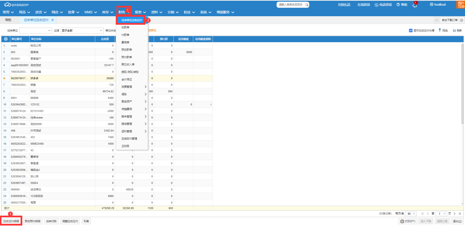 首先财务】-【往来单位应收应付页面,选择需要查询的单位,