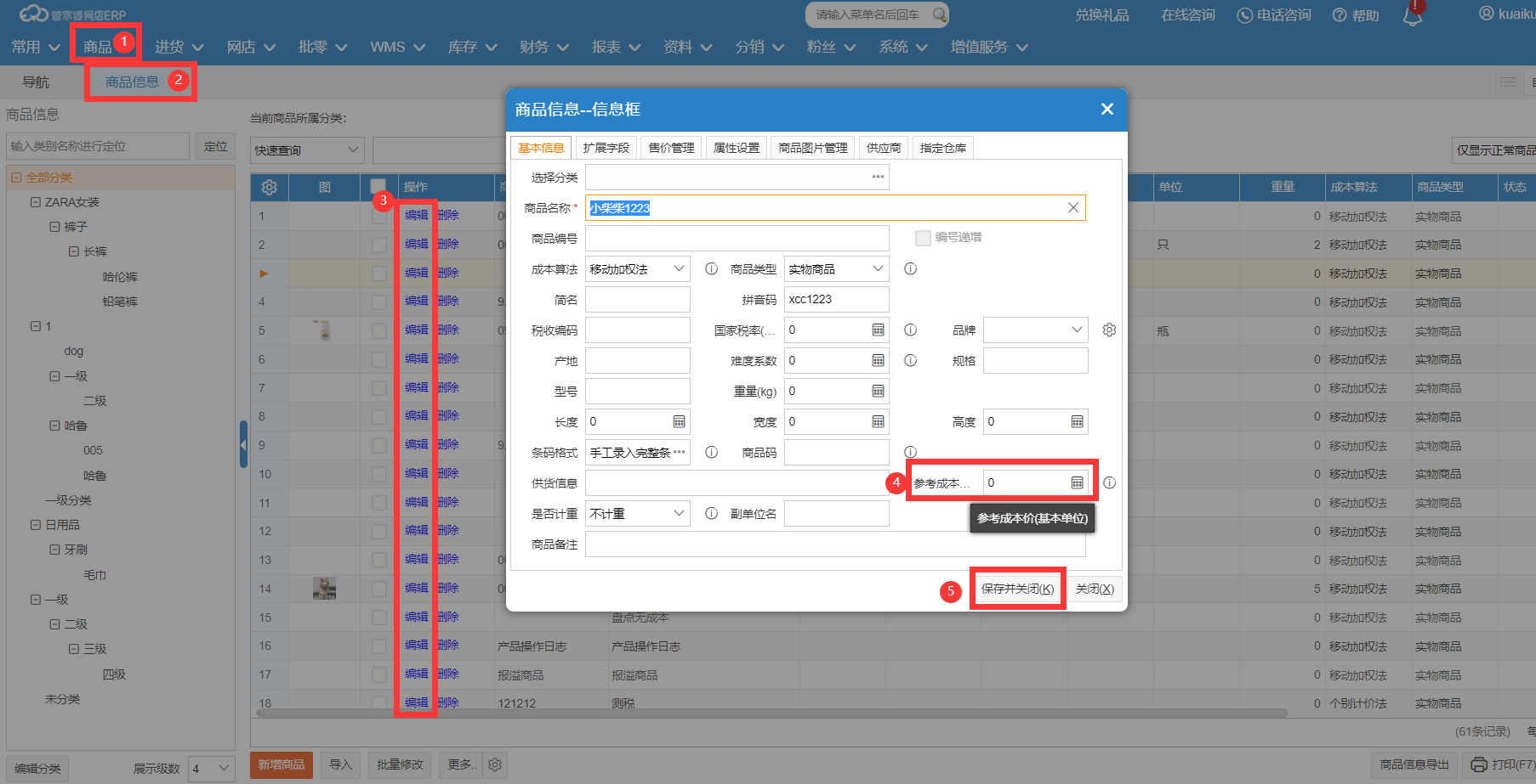 您好,在【商品】—【商品信息】页面,找到商品点击【编辑】,在商品信息框可以录入或修改该商品的参考成本价。